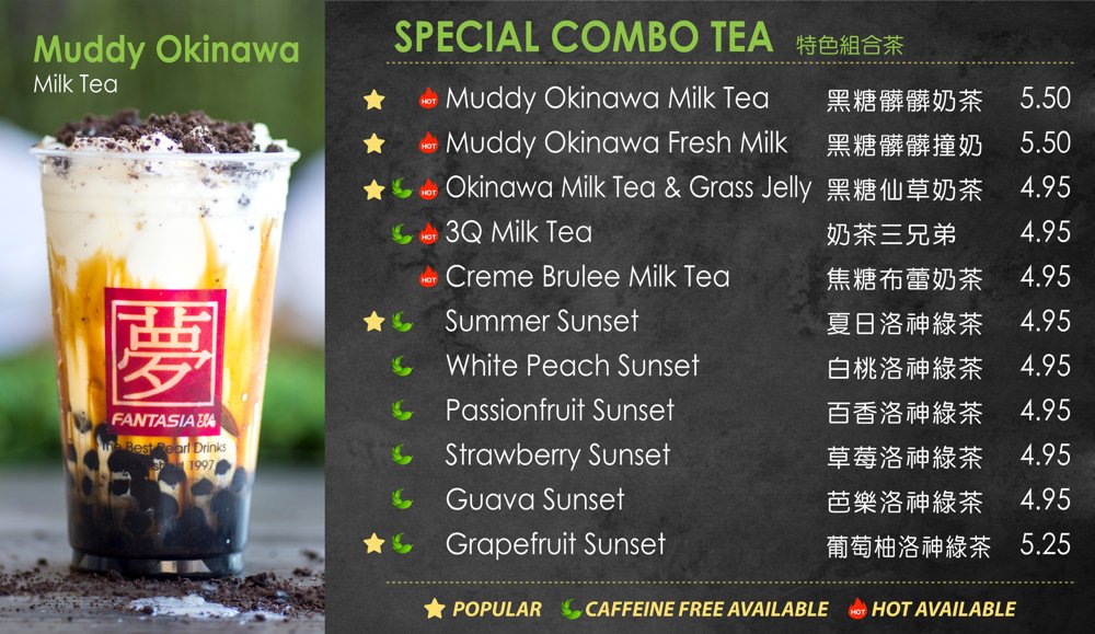 Fantasia Coffee & Tea, located in Milpitas, CA, is a paradise for bubble tea enthusiasts. This establishment offers a wide range of cold and hot beverages, including unique options like Muddy Okinawa Milk Tea and Creme Brulee Milk Tea. The desserts selection features house-made Flan in a Jar and Grass Jelly, catering to those with a sweet tooth. Customers rave about the high-quality boba pearls, refreshing flavors, and quick service at Fantasia. The pricing may be on the higher end, but the exceptional drink quality justifies it. With a longstanding history in the Bay Area, this spot holds sentimental value for many locals. If you're in the area, don't miss the chance to experience the diverse and delicious menu at Fantasia Coffee & Tea.